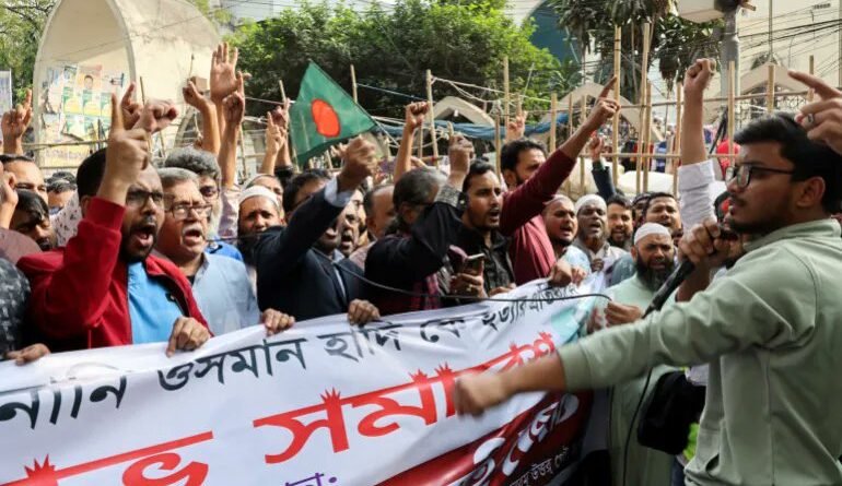 बांग्लादेश में हिंसा का नया दौर शुरू हो गया है। इंकलाब मंच के नेता शरीफ उस्मान हादी की हत्या के बाद बेकाबू भीड़ ने गुरुवार देर रात से शुक्रवार सुबह तक कई शहरों में उत्पात मचाया और आगजनी व तोड़फोड़ की। इसी दौरान, ईशनिंदा के आरोप में एक हिंदू युवक की पीट-पीटकर हत्या कर शव को जला दिया गया। बांग्लादेश में पिछले वर्ष जुलाई में हुए विद्रोह में शामिल प्रमुख नेताओं में से एक हादी की गुरुवार रात सिंगापुर के एक अस्पताल में मौत हो गई थी। ढाका के बिजोयनगर इलाके में 12 दिसंबर को एक चुनावी अभियान के दाैरान हुए हमले में उनके सिर में गोली मार दी गई थी। उनकी मौत की खबर फैलते ही समर्थक और कट्टरपंथी छात्र सड़कों पर उतर आए। उन्होंने आगजनी, तोड़फोड़ और लक्षित हमले शुरू कर दिए।